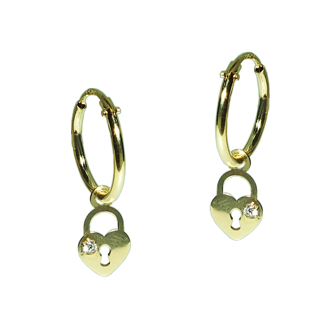 Aros de Oro 18k Zircon: 1-511801AT8 Aro de Oro Amarillo Argolla Lisa 1,1 Candado